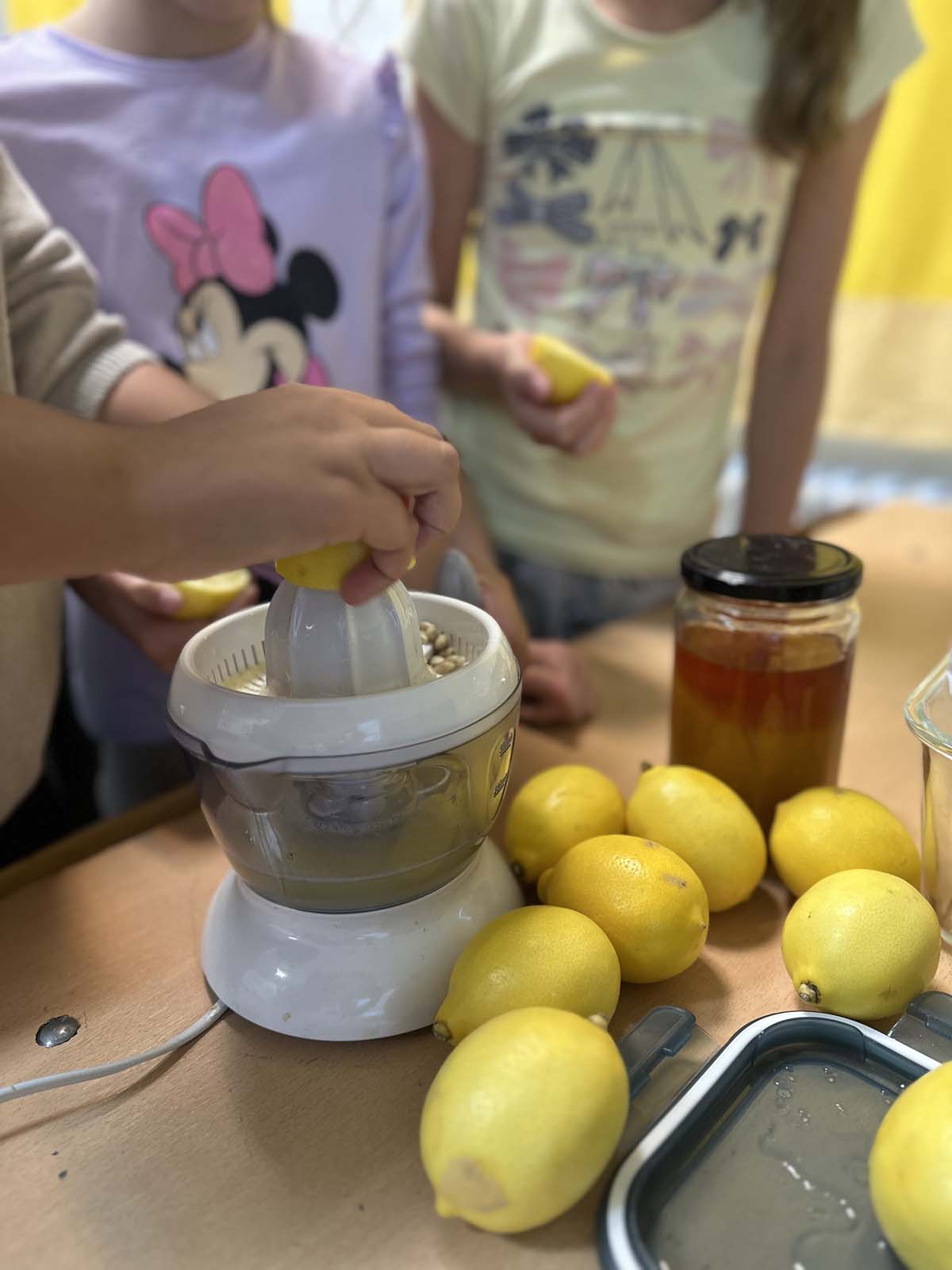 Смислено је формирано дванаест тањира и двадесет четири чаше за лимунаде, јер је радионица осмишљена са циљем да се тањир воћне салате, заједнички припремљене, дели са другом из клупе, где смо окупили све вредности овог дана – здраву храну, смех и другарство. Радионица је протекла у ведрој и радосној атмосфери, уз много смеха, дружења и креативности.