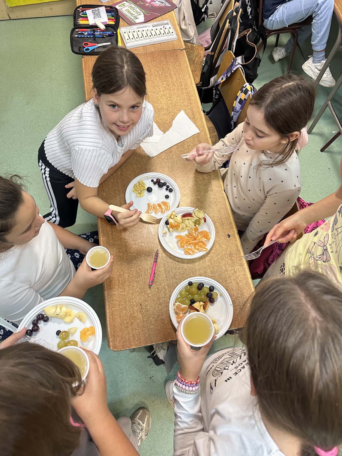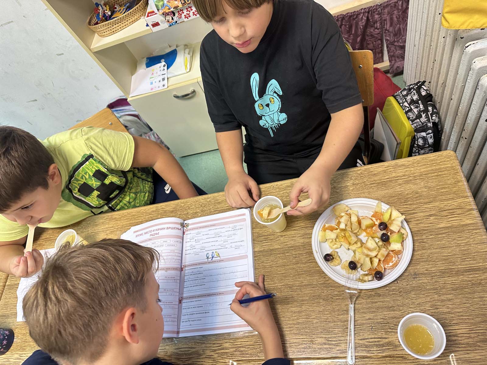 Поводом Дана здраве хране, који се обележава 16. октобра, у одељењу IV-5 одржана је занимљива радионица посвећена здравим навикама. Ученици су припремали воћне салате и лимунаде са медом, као важним делом здраве исхране, а били су подељени у три екипе: једна екипа је радила припрему воћа (прање, љуштење), друга екипа је сецкала воће и ређала у дванаест тањира, а трећа екипа је цедила лимун и правила лимунаде. Потом су се ротирали, како би сви ученици прошли све делове радионице.