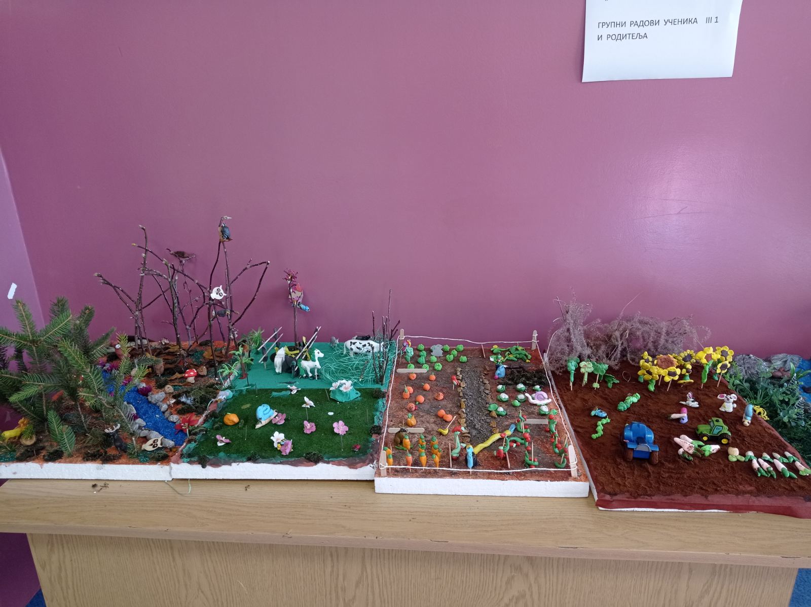Дана, 19.11.2025. године ученици III-1 су уз помоћ родитеља и учитељице Биљане Вуковић урадили моделе животних заједница. У групном раду учествовали су један родитељ и 3-4 ученика. Рад је организован са 8 група за 8 животних заједница (шума, ливада и пашњак, река, бара и језеро, њива, воћњак и виноград, повртњак и парк). Учитељица је на почетку часа упутила родитеље и ученике о начину рада и даље у току часа давала смернице. Сав потребан материјал донели су ученици и присутни родитељи.