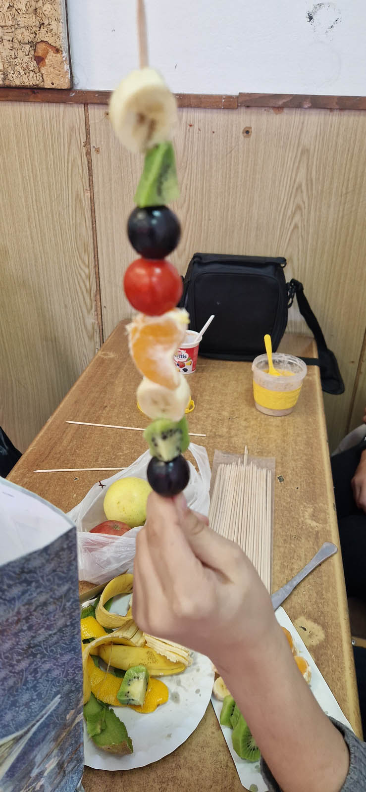 Током часа ученици су, уз тимски рад и много добре воље, припремали здраве оброке према изабраним рецептима – воћне салате, повртне канапее, енергетске куглице и друге укусне, а једноставне посластице које се не пеку.