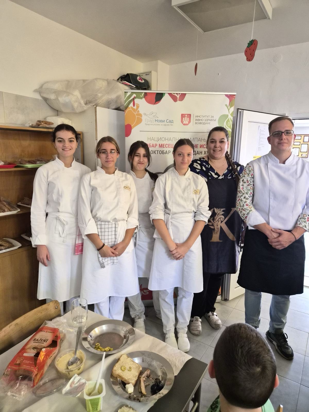 Октобар – месец правилне исхране30.10.2025.Летопис 2025-2026, ОбавештењаДана 30.10.2025. године у нашој школи у сарадњи са Институтом за јавно здравље Војводине одржана је радионица са ученицима првог разреда „Кување заједно са децом“.Анита Иванишевић, психолог.