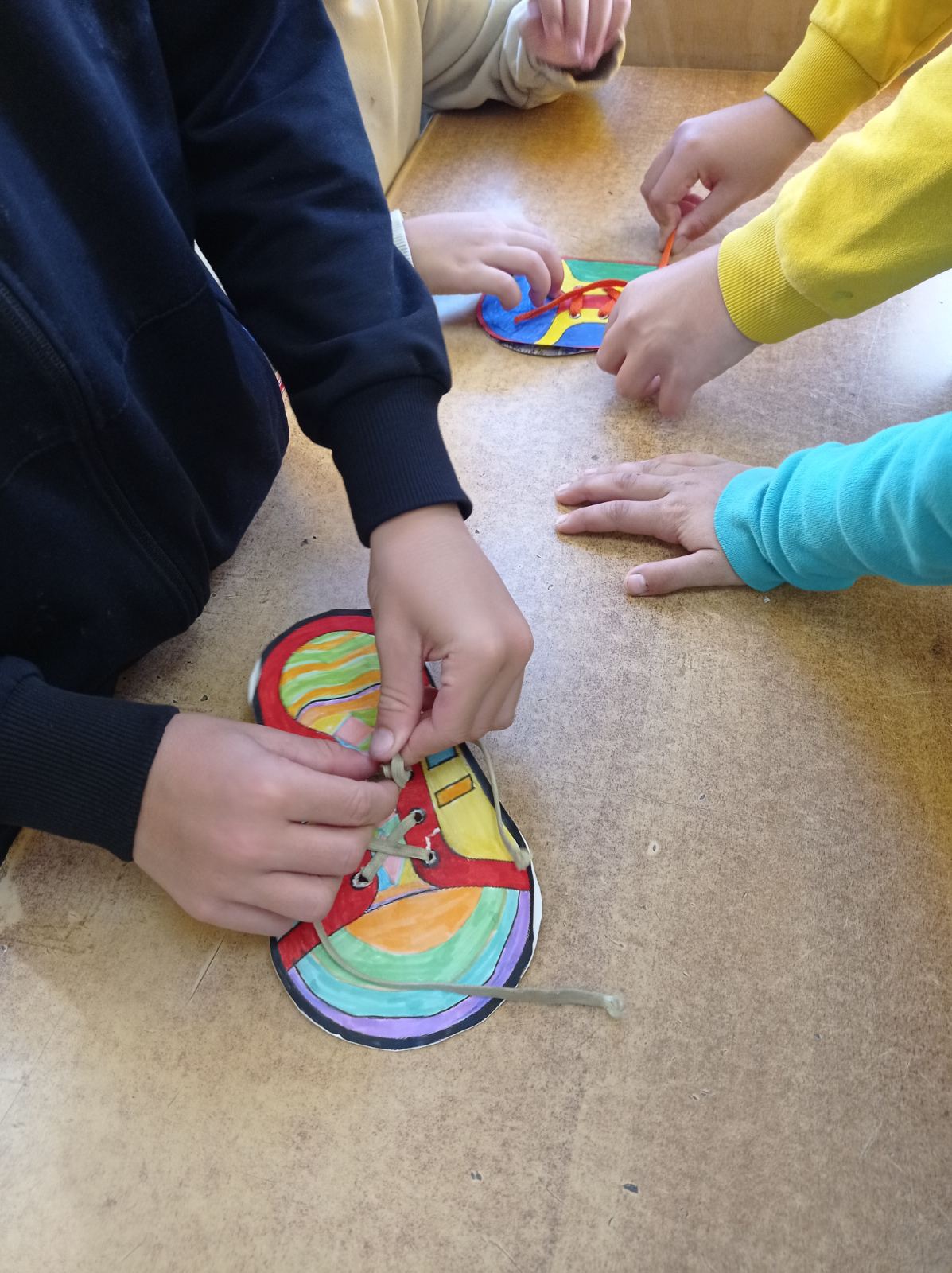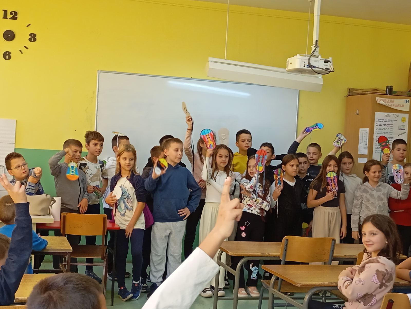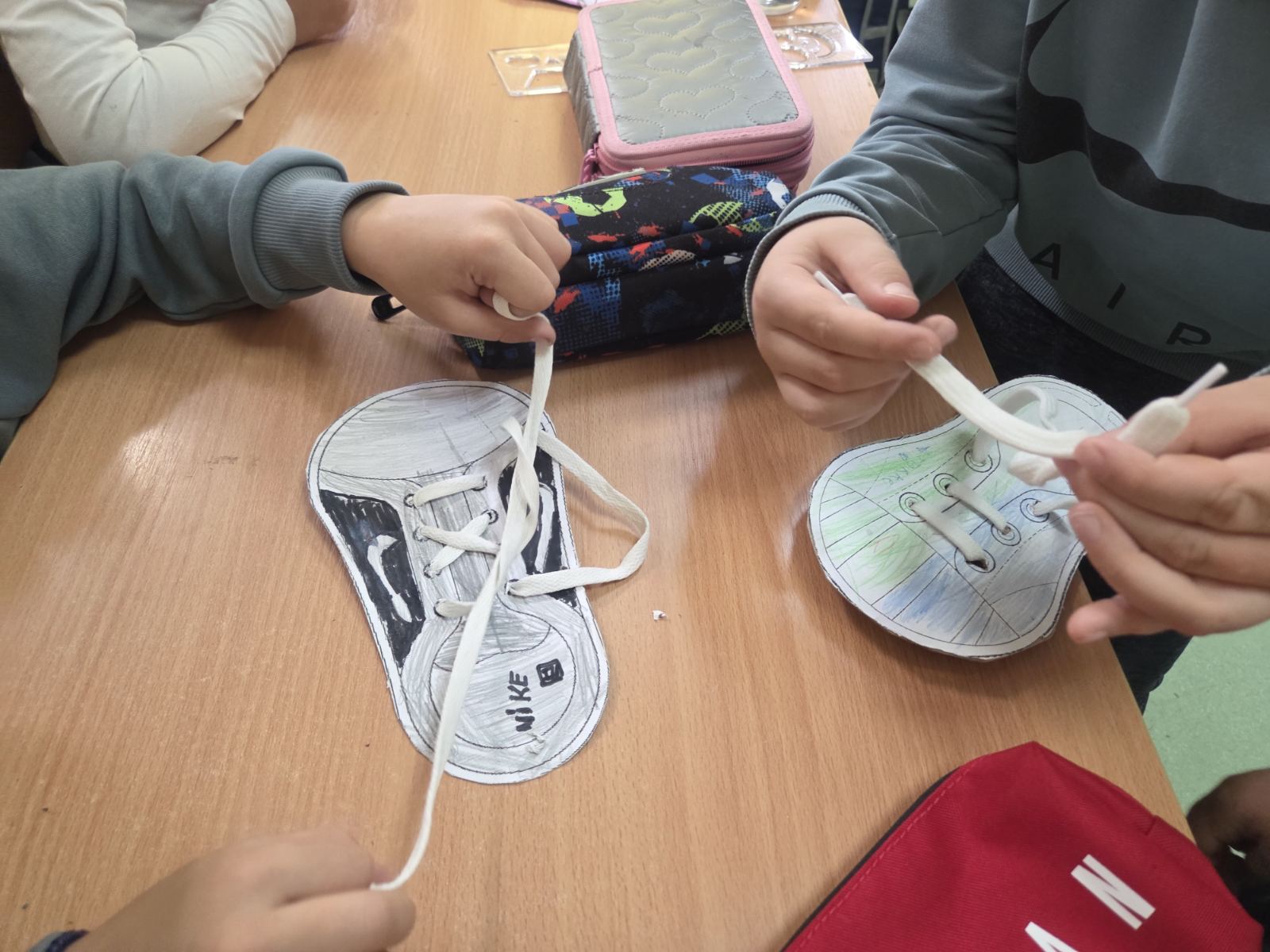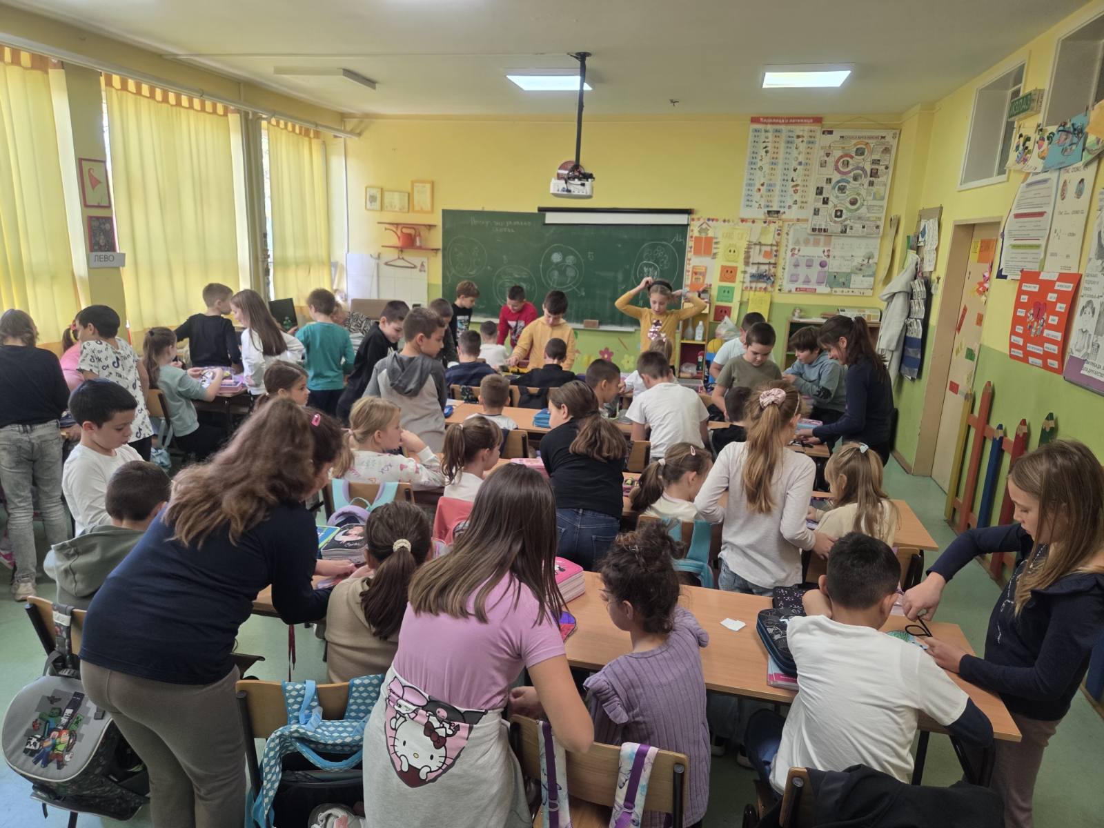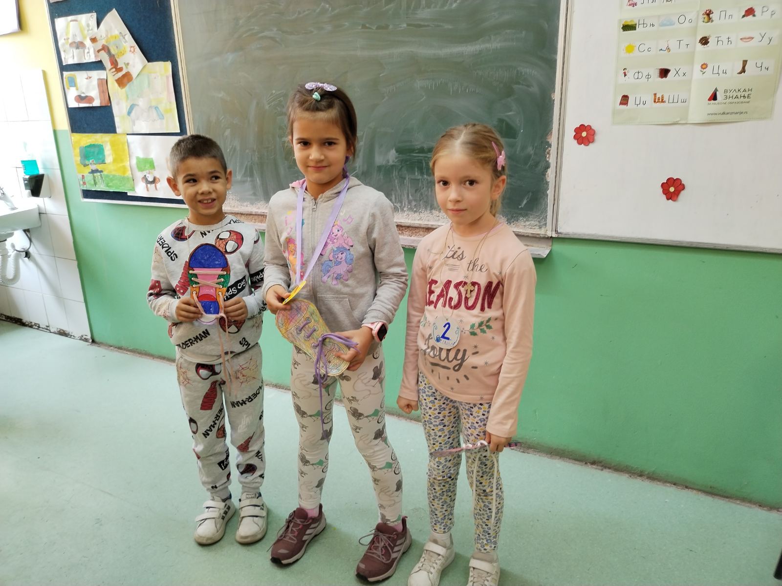 Учитељице првог и трећег разреда су, већ по традицији, обележиле Дечју недељу пријемом првака у Дечји савез. Организован је сусрет истих одељења по учионицама III1 – I1, III2 – I2, III3 – I3, III4 – I4. Међутим, ово није било само обично дружење. Ученици трећаци су обучавали мале прваке у правилном везивању пертли. Обуку је пратило весело певање дечијих песмица и слатко уживање уз бомбоне. На крају је организовано и такмичење уз доделу диплома и медаља за најуспешније. Задовољство је било обострано, како „малих учитеља“, тако и њихових ученика. Наравно, ову занимљиву обуку су сви успешно положили.